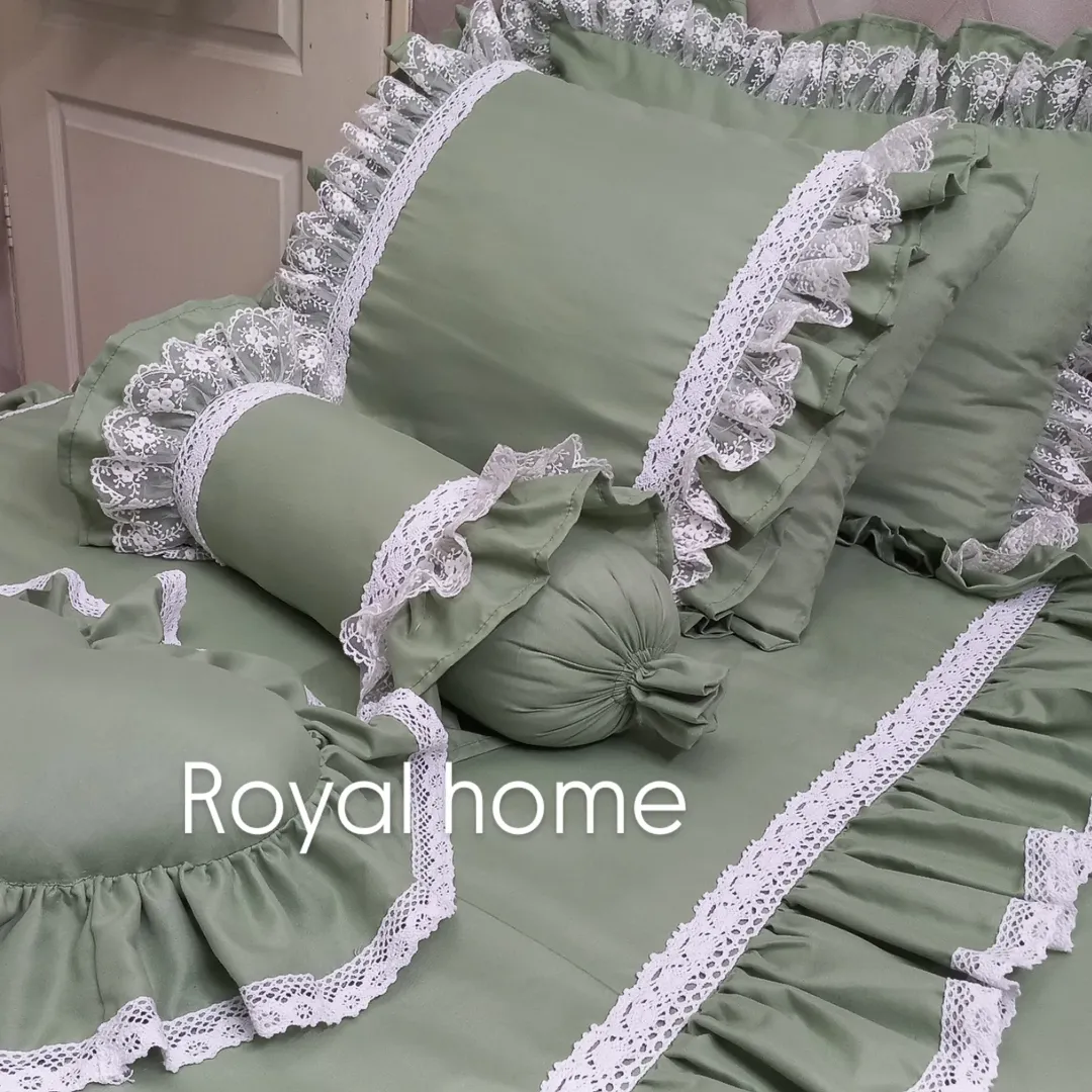 روتختی جدید با پارچه نخ پنبه وارداتی با نوار و دانتل دوزی زیبا تزیین شده فوق شیک برای ست جهیزیه و اتاق دختر خانمهای لوکس پسند در رنگبندی متنوع با سایز دلخواه قابل اجراست. یک نفره ۴تیکه شامل لحاف +کاور تشک+یک جفت روبالش دونفره ۶تیکه شامل لحاف +کاور تشک ۴ عدد روبالش کوسن قلبی و کوسن استوانه ای طبق سفارش بصورت جداگانه ثبت میشه جنس پارچه نخ پنبهای با ضمانت شستشو