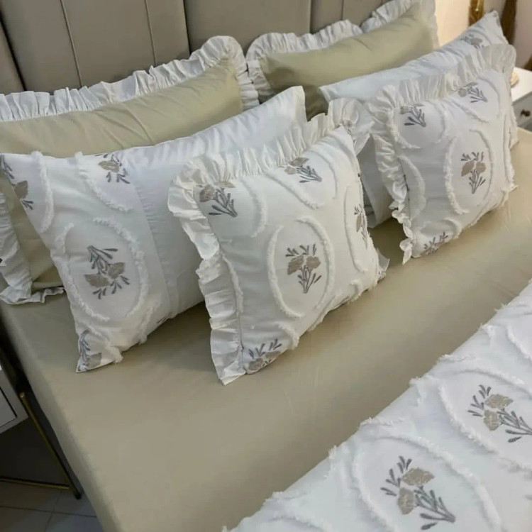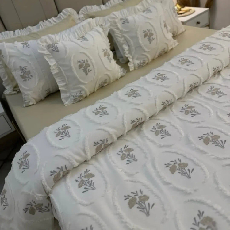 روتختی با کیفیت بالا مقاوم در برابر شستشوی مکرر. رنگ زیره لحاف و کاور تشک طبق سلیقه شما سایز و مدل دلخواه شما قابل اجراست. دونفره شامل لحاف خامه دوزی کاور تشک کشدار یک جفت روبالش ساده چیندار یک جفت روبالش خامه دوزی یک جفت روکوسن خامه دوزی چیندار