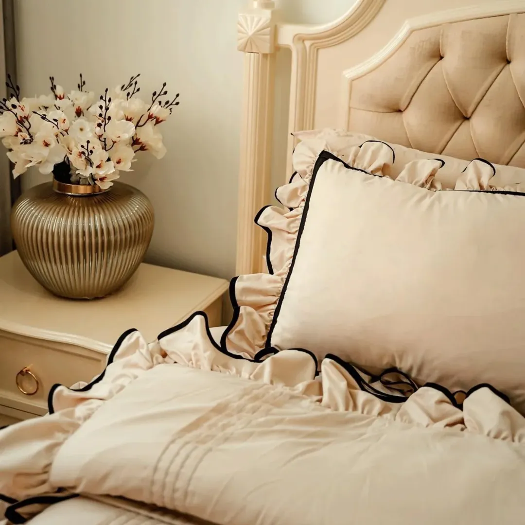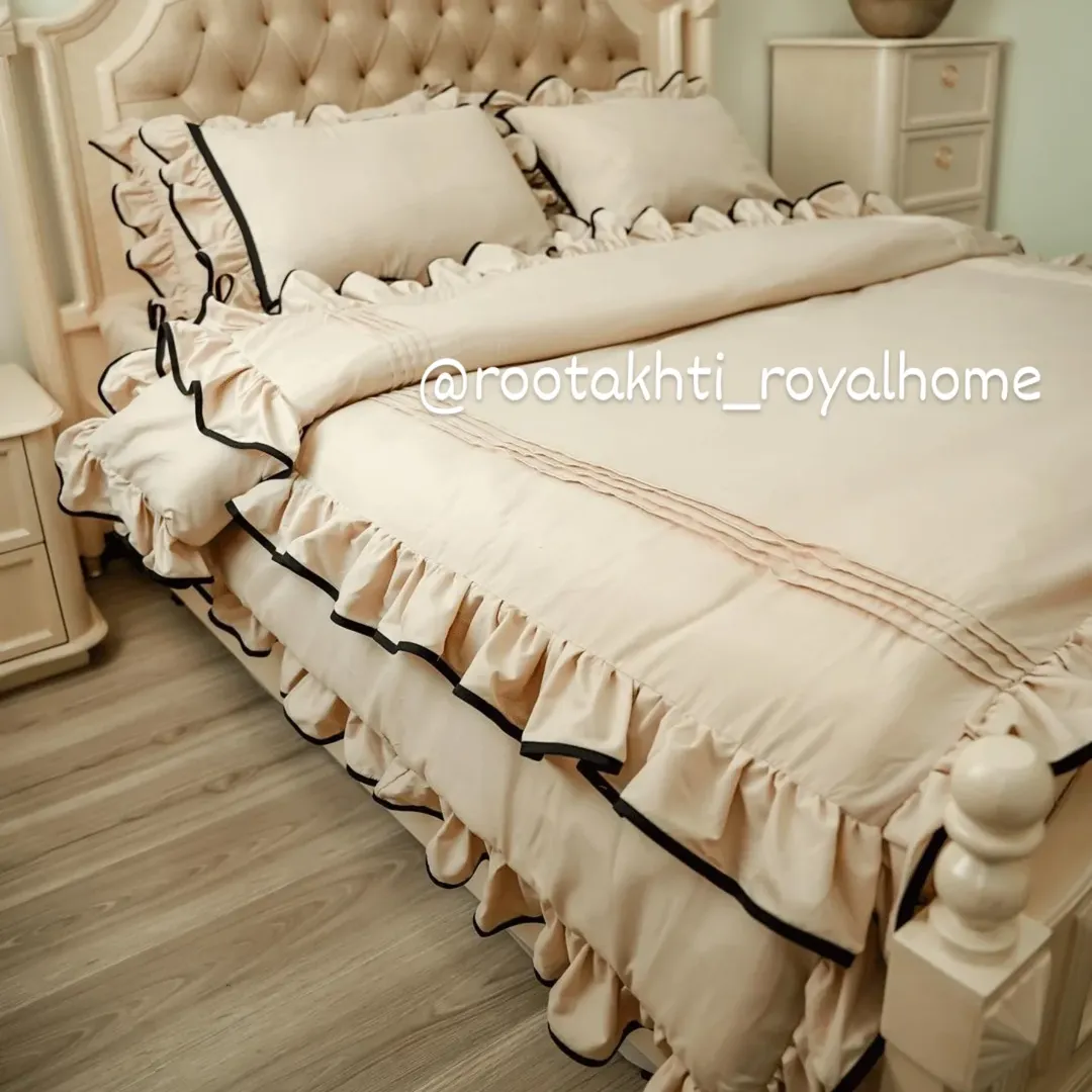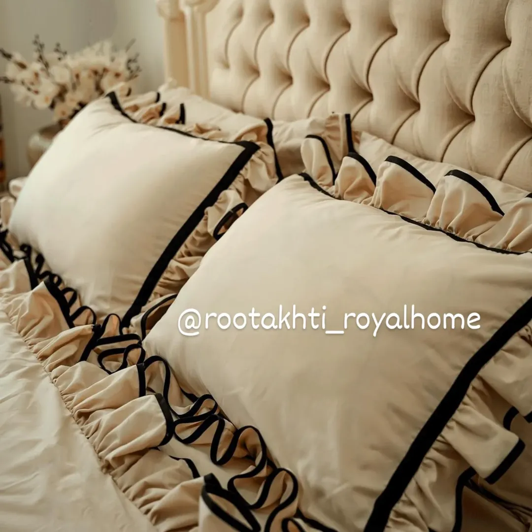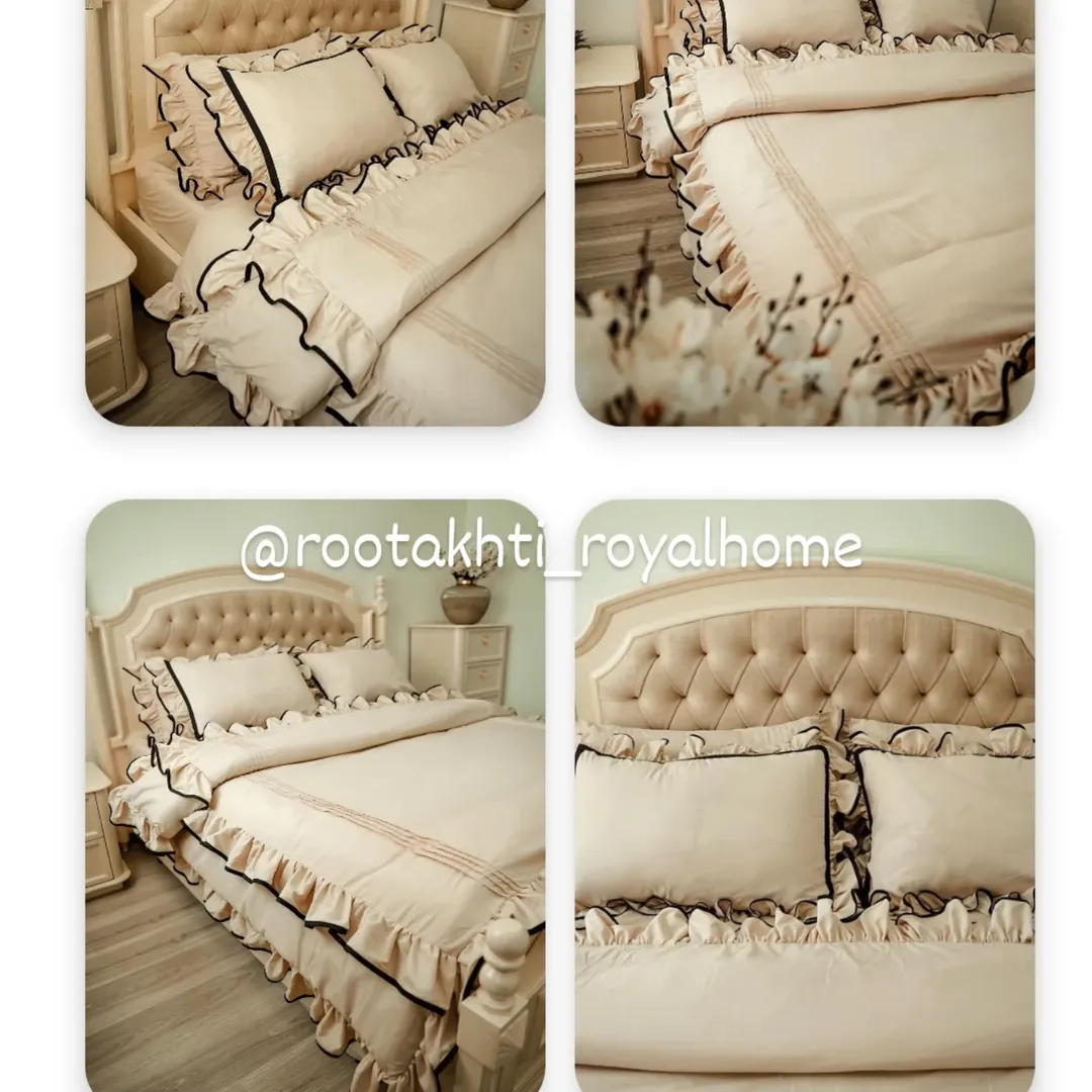 یک انتخاب خاص برای اتاقخوابتان! مشتری خوش سلیقه مون که خودشون زحمت کشیدن این عکسهای خوشگل را برامون فرستادن روتختی چیندار با نوار مشکی، جلوهای لوکس و متفاوت به دکوراسیون شما میبخشد. جنس پارچه نخ پنبه وارداتی با کیفیت عالی دوخت بسیار تمیز و با ظرافت بالا توسط خیاط های حرفه ای مون طراحی منحصر بفرد مناسب همه سلیقه ها با رنگبندی دلخواه شما و سایز دلخواه شما دوخته میشه یک نفره شامل لحاف کاور تشک یک جفت روبالش دونفره شامل لحاف کاور تشک ۴عدد روبالش