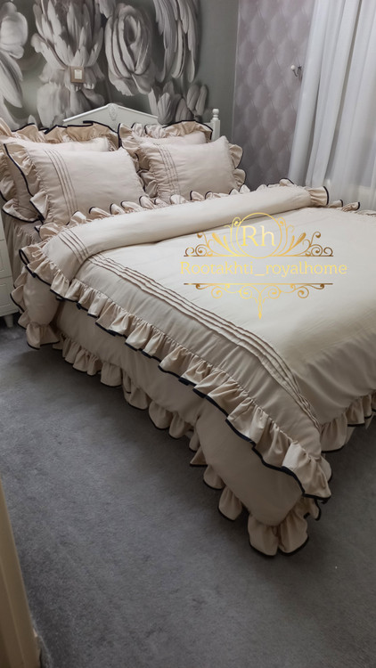 اینجا جاییه که روتختی های پینترستی و ترند رو دقیقا به سلیقه و سایز دلخواه تو میدوزیم بپوشون تختتو با یه رؤیای پُر از لطافت و ظرافت داخل این بسته جادویی چه خبره؟ روتختی از پارچهی نخ پنبهٔ تنفسدار، لطیف مثل نوازش مهتاب دوخت چیندار و خطی با نوار مشکی که مثل قاب، زیبایی رو برجسته میکنه کاور تشک با چینهای ظریف برای یه نمای شاهانه لحاف، جدا از کاور طراحی شده تا شستنش آسونتر از همیشه باشه روبالشیِ چیندارِ دلبر که دکور اتاقتو کامل میکنه ضمانت ثبات رنگ بدون پرزدهی ارسال رایگان تا در خونهات جنس نخ پنبه وارداتی با کیفیت تضمینی کاملا رنگ ثابت ست دونفره شامل لحاف کاوری+لحاف لایت+کاور تشک چیندار یا معمولی طبق سلیقه شما+۴عدد روبالش چیندار یک نفره شامل لحاف+کاور لحاف+کاور تشک+یک جفت روبالش چیندار