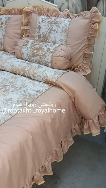 ترکیبی از ظرافت و شکوه روتختی خاص و چشمنواز با پارچه مخمل پتینه طلایی و نخ پنبه نسکافهای، دوخته شده با مدل چیندار خاص این ویژه با سلیقه مشتری عزیزمون انتخاب و با دقت توسط تیم رویال هوم اجرا شده شما هم میتونید رنگ و مدل دلخواهتون رو انتخاب کنید و روتختی مخصوص خودتون رو بدید